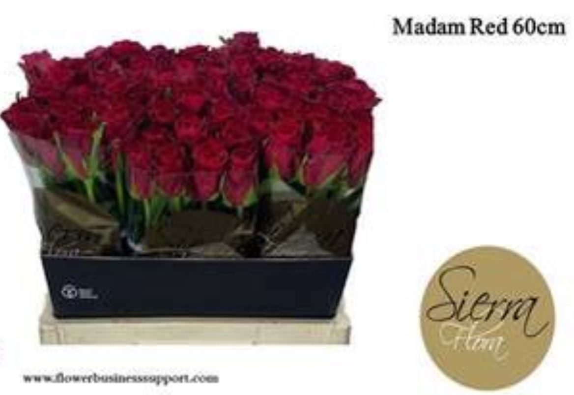 Kolli 98 Länge 60 Inhalt 80 Reife 23 Anzahl 7840 Herkunftsland NL Qualität A1 Züchter Sierra Flora -,-≥ 80 stk -,-Rosa Grossblütig Madam Red
